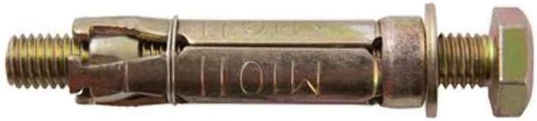 Heavy duty, yellow passivated expansion anchor with 4-way expansion shield for secure fixing. Torque-controlled for installation of racking, hand rails, barriers, storage systems, machinery and numerous other applications. For fixing into masonry and concrete, indoors and out. Supplied with shield, washer and bolt. Size guide: e.g. M8 - 35 x 90mm: (M8 = bolt size; 35mm = maximum material thickness the bolt will Fasten; 90mm = length of fixing).
